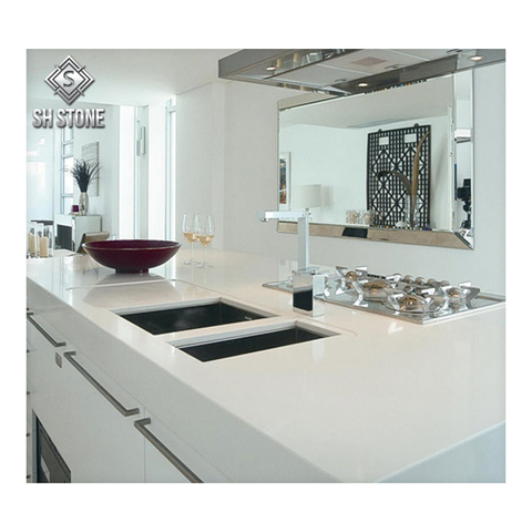 SHIHUI-lavabo de cuarzo Artificial para baño, encimera de cocina, tocador de piedra de cuarzo Blanco chino, barato, Comercial